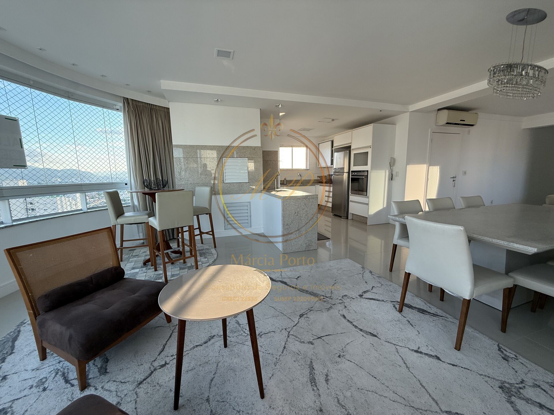 Apartamento mobiliado, com acabamento de qualidade e ambientes integrados com excelente iluminação natural.